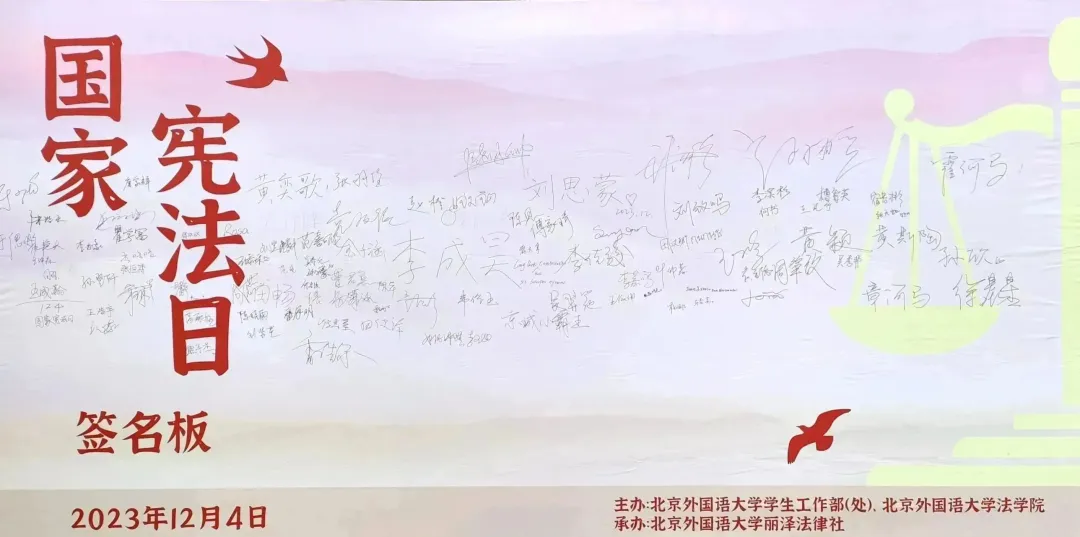 丽泽法律社在每年的十二月四日展开全方位多层次的宪法宣传活动。线下通过设置签名墙和有奖问答的方式激励员工参与。线上依托青少年普法小程序,拓宽宪法日活动参与渠道,扩大宪法日活动辐射范围。