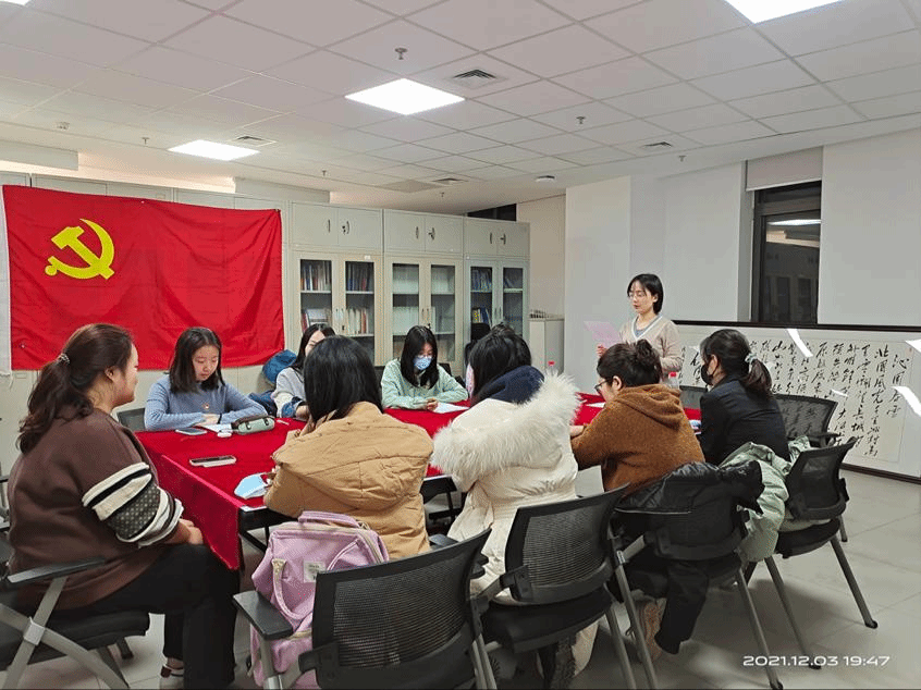 2021年12月3日晚,yl9193永利集团本科生党支部在国内大厦1号楼207会议室召开支部会议,讨论了关于江承泽、简进泓、刘怡乐、周冰妍等四位同志申请转为正式党员的问题。会议由yl9193永利集团本科生党支部书记刘时剑老师主持。