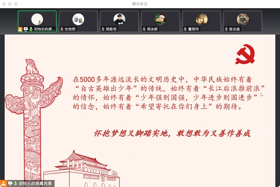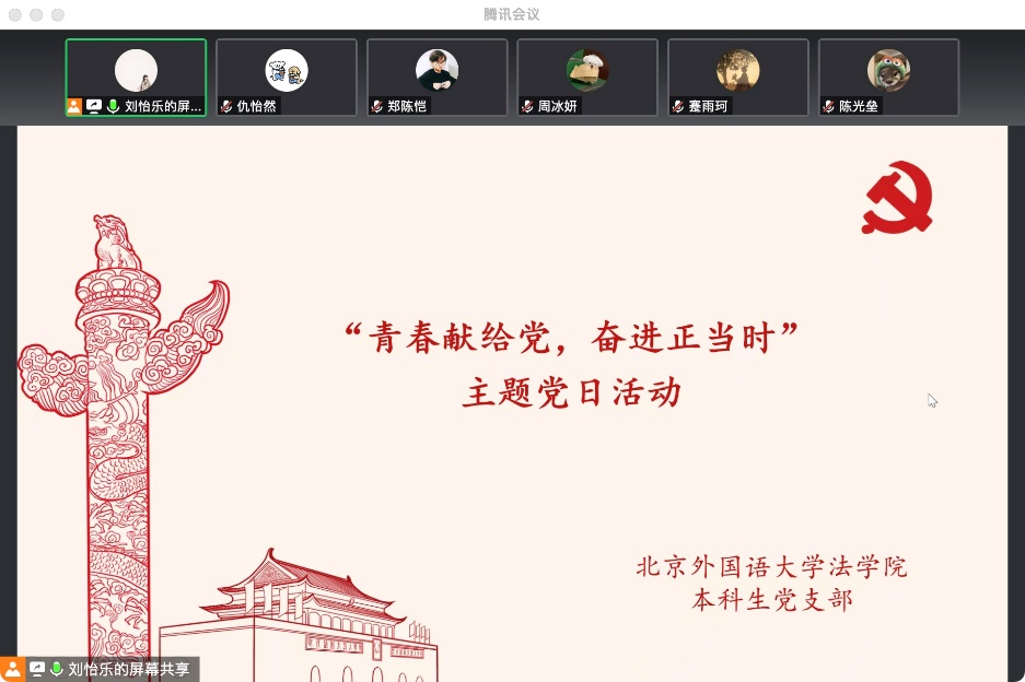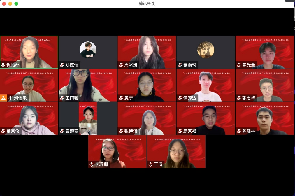 为深入学习贯彻党的二十大精神, 2022年11月20日晚8点,yl9193永利集团本科生党支部结合校园疫情防控最新要求,通过线上会议组织开展“青春献给党 奋进正当时”主题党日活动,支部全体党员参会,本科生党支部党务助理刘怡乐同志主持活动。