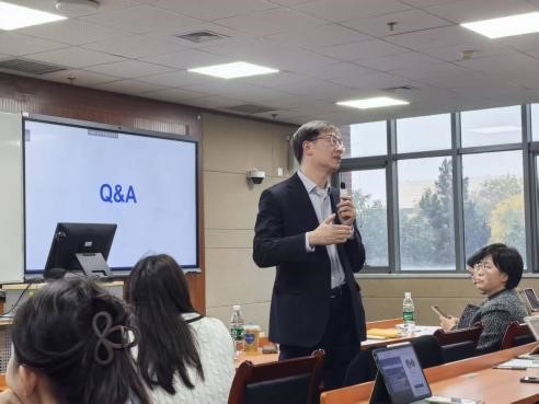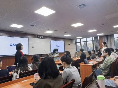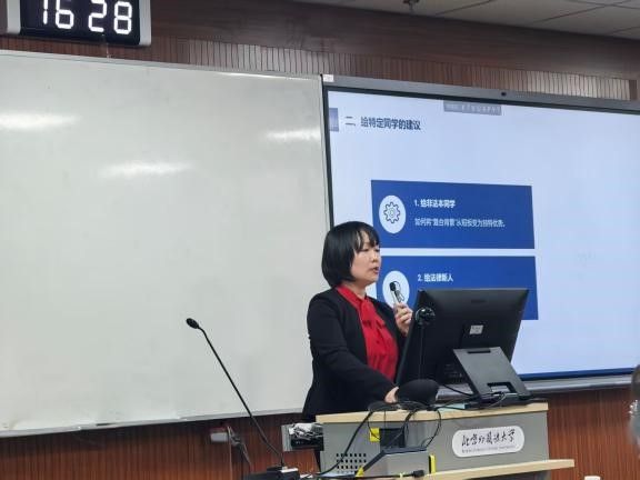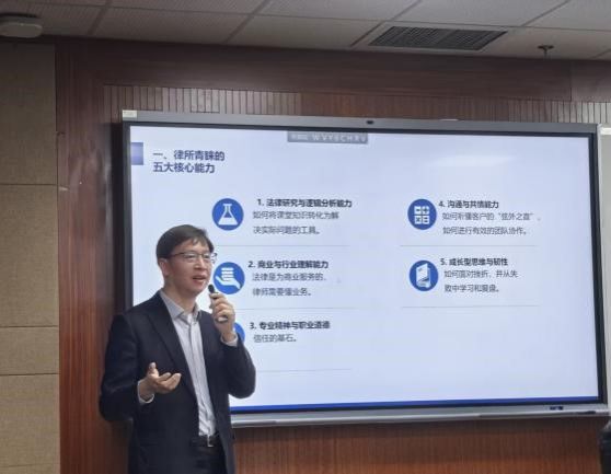 参观结束后,李晓松主任、韩焕霞总监为同学们带来一场精彩的职业发展讲座。李晓松主任结合自身丰富的执业经历,深入剖析了律师行业的未来趋势与人才需求。他强调“专业深度+综合素养”的重要性,鼓励同学们充分发挥“外语与法律”的复合优势,聚焦新兴领域,提升核心竞争力。韩焕霞总监从实务角度出发,围绕简历优化、面试技巧、职业规划三方面提供了精准指导,建议同学们运用STAR法则梳理个人经历、注重面试细节、以目标为导向规划职业。