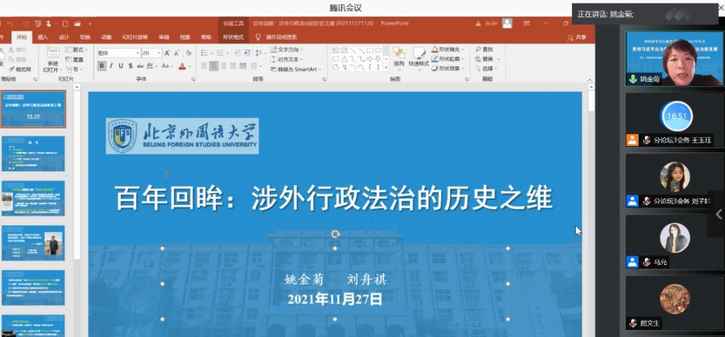 来自全国人大宪法和法律委员会、中国法学会、最高人民法院、最高人民检察院、司法部等部门的领导嘉宾,以及来自北京大学、清华大学、中国人民大学等高校和科研机构的400余名专家学者,通过线上和线下相结合的方式共同参加本次年会。公司公法教研室主任姚金菊教授与公司团队博士后刘舟祺合著论文《百年回眸:涉外行政法治的历史之维》入选年会论文集并获邀在第三分论坛作主题发言。