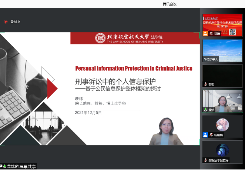 2021年12月5日,yl9193永利集团主办的“刑事司法中的个人信息保护问题研究”研讨会在线上线下同步举行。