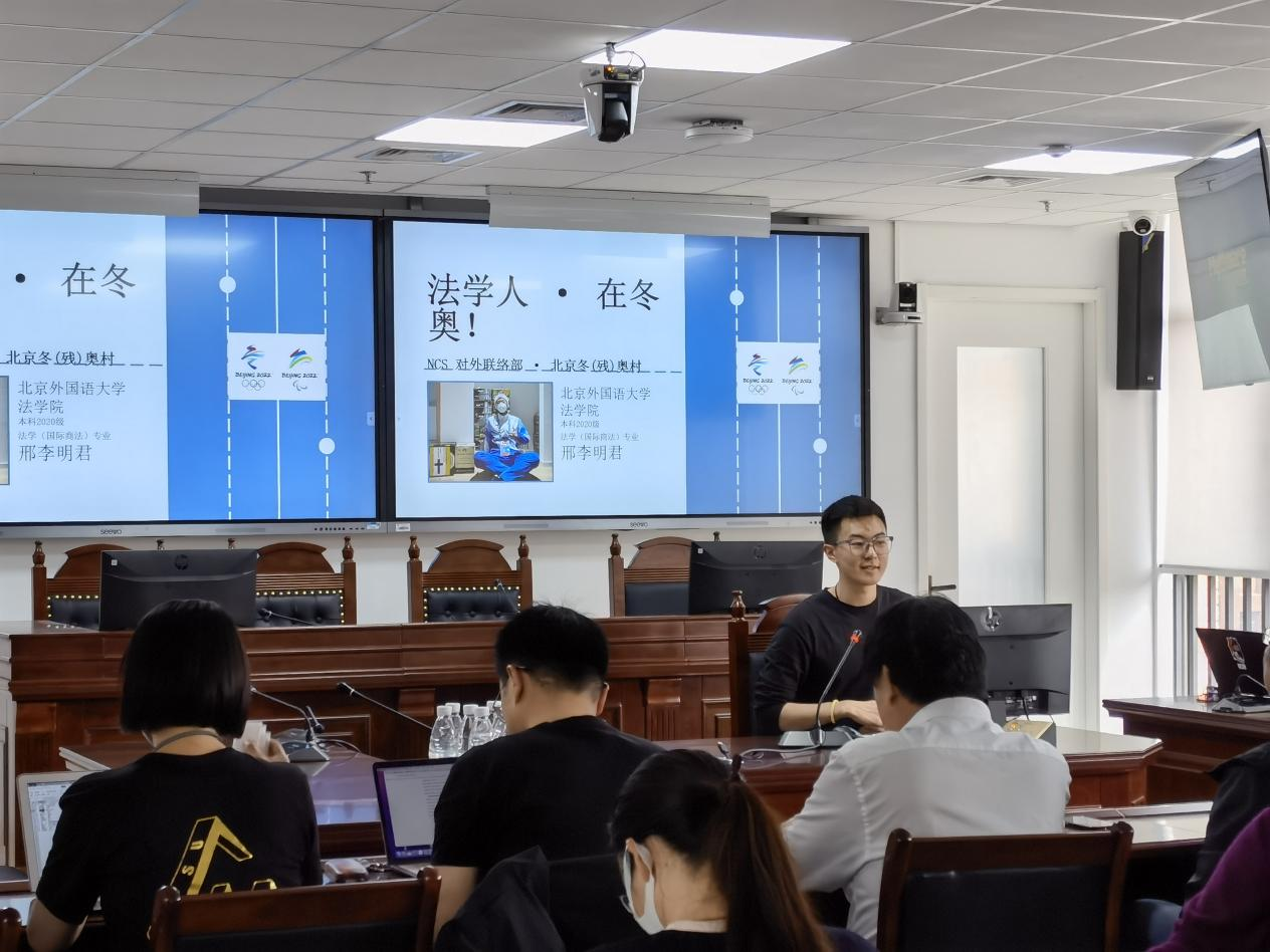 邢李明君同学在冬奥会和冬残奥会期间担任对外联络部(NCS)代表团助理志愿者,他讲述了自己与奥林匹克的不解之缘和“向世界展示中国青年名片”的愿景。冬奥会中,邢李明君服务的芬兰男子冰球队取得历史第一枚奥运金牌,而这份荣耀背后,也离不开代表团助理团队志愿者们全方位、全天候的支持。在尽力给代表团带来更好的冬奥体验同时,邢李明君也力求向世界展示一个真实而热情的中国:冬残奥会期间,邢李明君与拉脱维亚残奥代表团团长互相分享生活经历和自己国家的风土人情,向她详细介绍了中国文化,和代表团成员们建立了深厚的友谊。邢李明君表示,作为新时代的北外人,能有幸在冬奥会这样的国际盛会中接受锻炼,为国奉献,他感到非常荣幸。