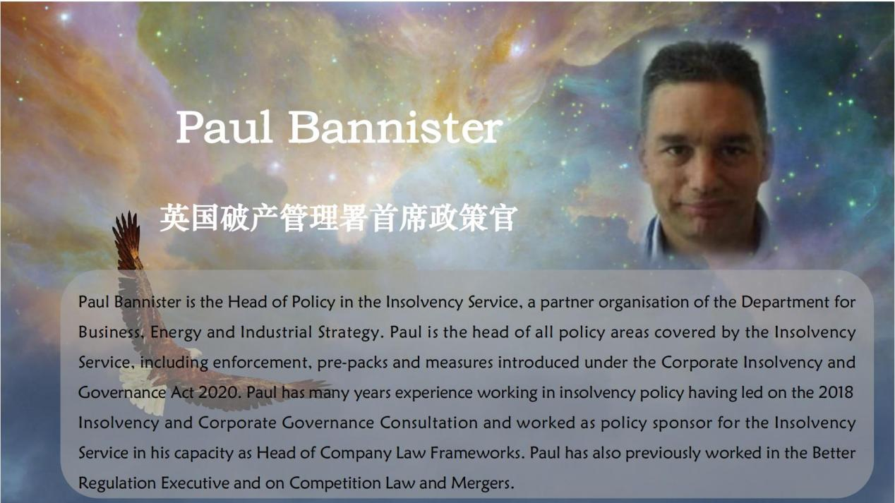 Paul Bannister政策官演讲的题目是:英国个人破产制度的未来方向。Paul Bannister政策官首先简要介绍了一下现实面临的状况,新冠疫情的大流行,利率水平,能源成本不断提高等角度介绍了推进个人破产制度的现实必要性,其次介绍了个人破产制度下所蕴含的制度性目的-“重新开始”,以及英国现存的个人破产制度之间的关联关系,能否切实降低债务人参与个人破产程序的成本,并表示优化个人破产制度的优化还有很长的路要走。