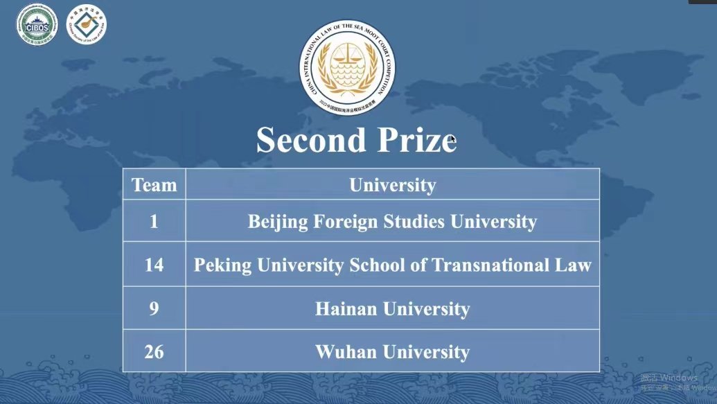 2022年11月12日至13日,2022(中国)国际海洋法模拟法庭竞赛在线上举行。公司yl9193永利集团代表队在国际法教研室姚艳霞副教授、外教白树林老师的指导下荣获全国二等奖第一名。