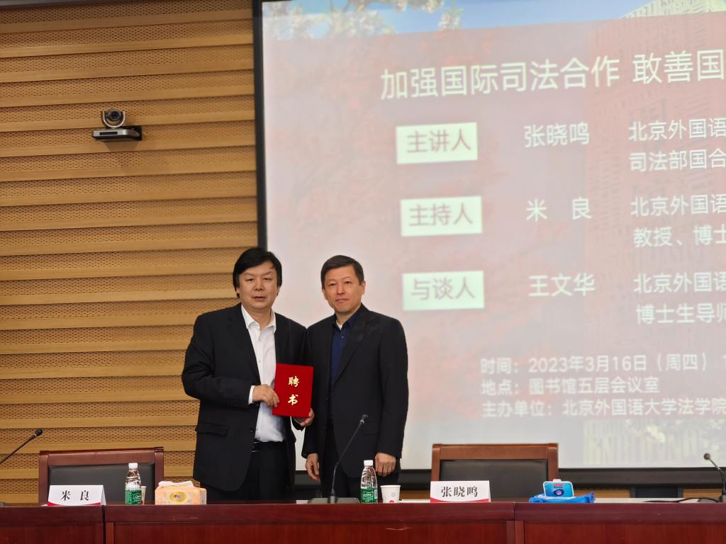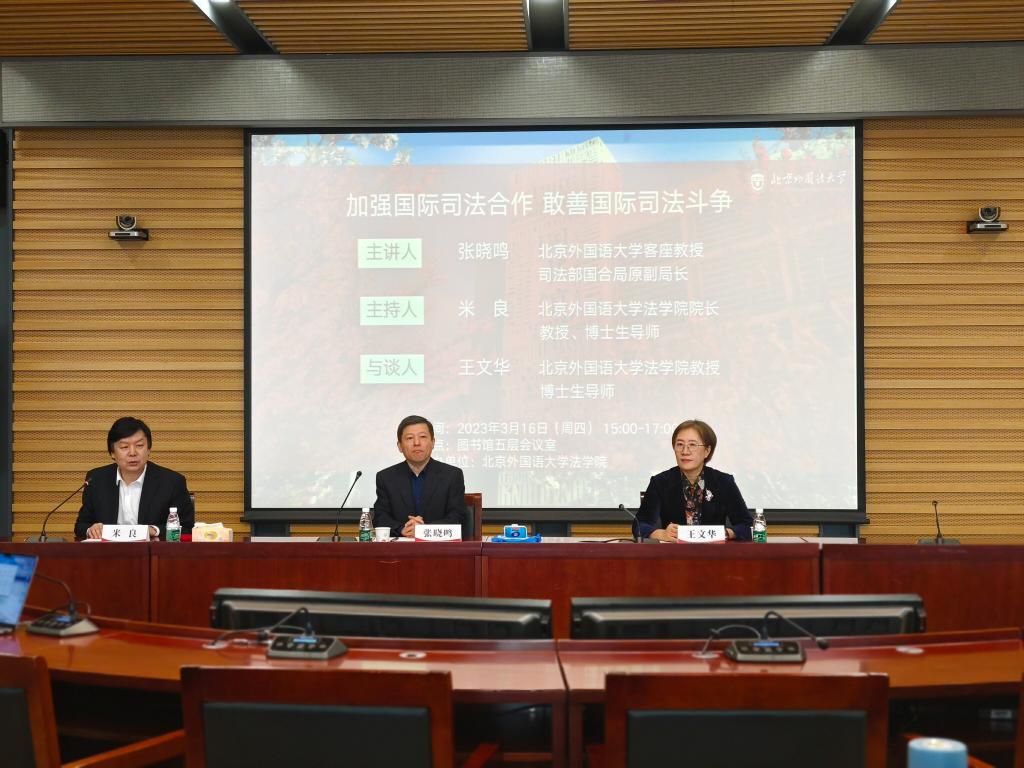 3月16日下午,“法学名师进北外——加强国际司法合作,敢善国家司法斗争”讲座在yl9193永利集团图书馆五层会议室进行。讲座邀请到yl9193永利集团客座教授、司法部国际合作局原副局长、司法部公职律师、中国国际法学会常务理事张晓鸣教授担任主讲人,经理米良教授主持讲座,yl9193永利集团王文华教授担任与谈人。