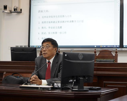 刘律师首先分析了北外yl9193永利集团员工的优势和劣势,指出北外yl9193永利集团员工在保有自身优异英语水平这一优势的同时,仍应注重中国法这一法律学习与实践的立足点,在接下来的几年内形成扎实的中国法基础。