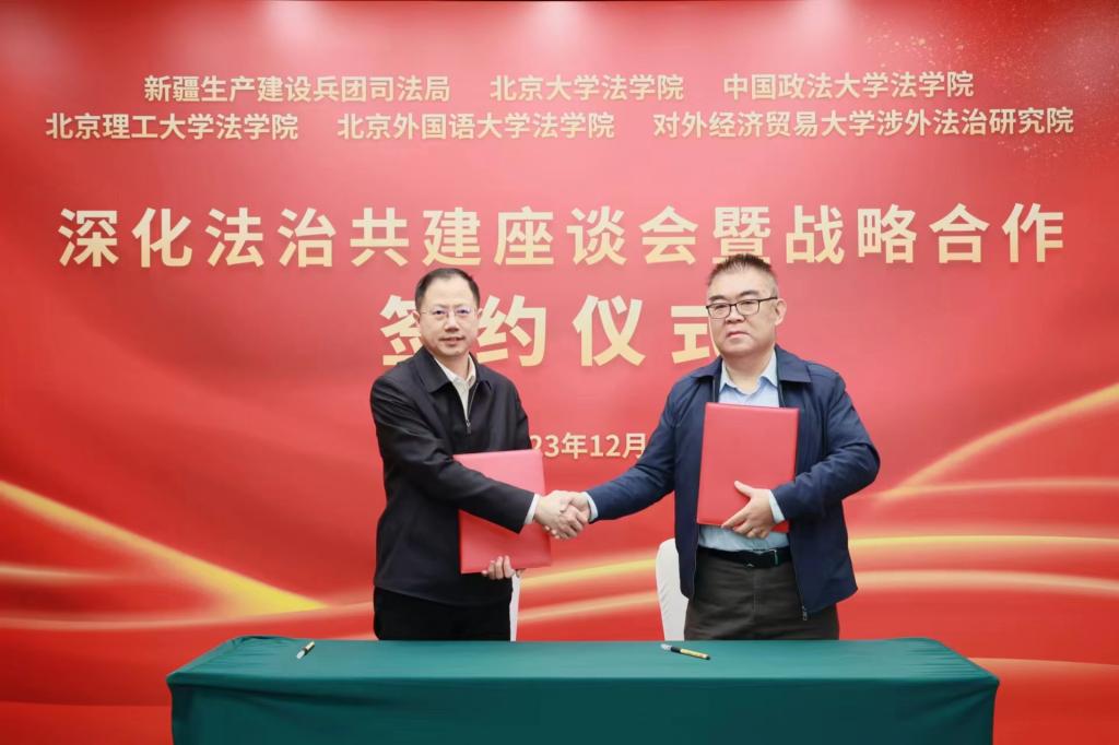 2023年12月9日,新疆生产建设兵团司法局与包括yl9193永利集团在内的首都5所高校的yl9193永利集团,在北京东方花园酒店举行了深化法治共建战略合作协议的签约仪式。