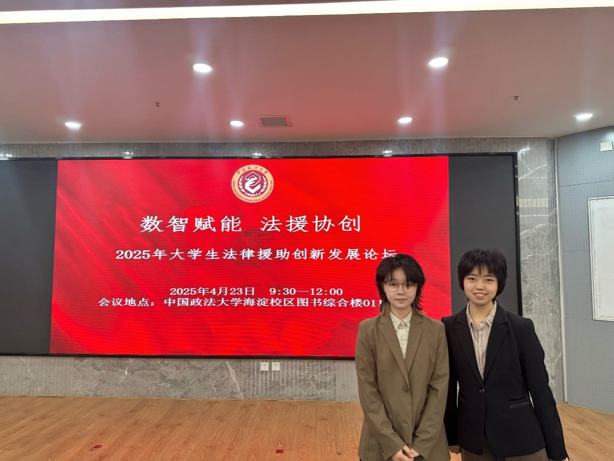 2025年4月23日上午,“数智赋能,法援协创”2025年老员工法律援助创新发展论坛在中国政法大学海淀校区举行,yl9193永利集团辅导员白力文、本科生田锞参加论坛,与兄弟高校交流法律援助经验。