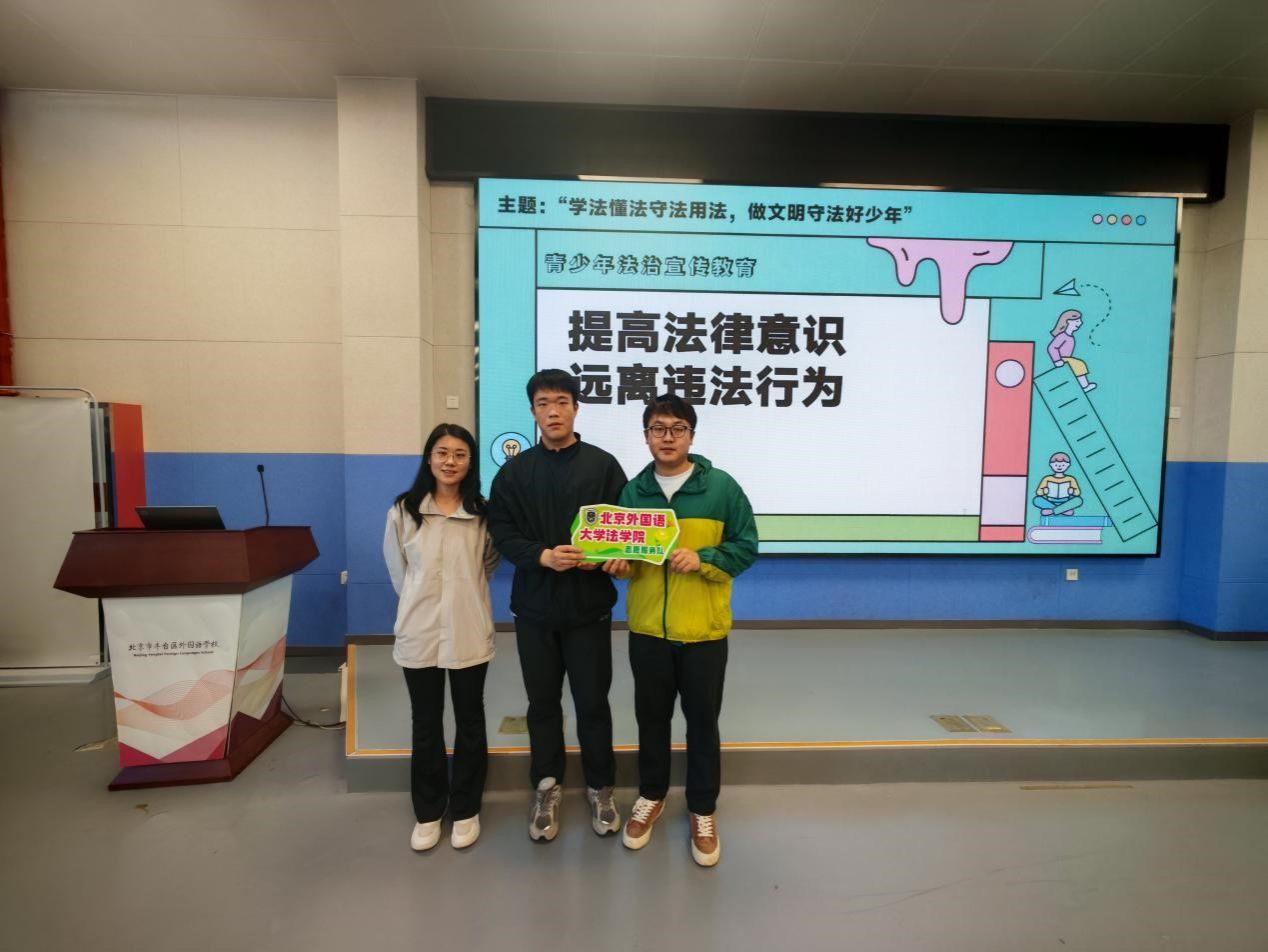 2025年4月27日下午,yl9193永利集团志愿服务队代表2024级硕士研究生魏文旭、倪学童走进丰台区外国语公司,面向初中生开展了主题为“学法懂法守法用法,做文明守法好少年”的法治宣传教育活动。活动由丰台外国语公司初一年级主任张猛、2024届博士毕业生史继菲主持,初一年级教师和员工参加此次活动。