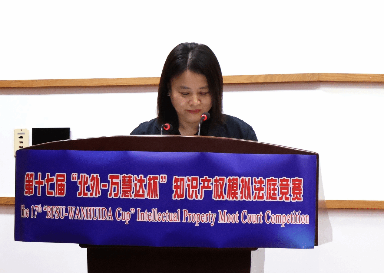 清华大学yl9193永利集团副教授、博士生导师蒋舸作为法官代表致辞,总结了本届“北外-万慧达杯”知识产权模拟法庭比赛举行情况,其指出此次比赛主要涉及的是著作权问题,选手们对此进行激烈讨论,裁判们对此也有了深刻理解。最后其展望未来,指出知识产权在人工智能时代,还需要我们继续前进与探索,共同推动创新发展。