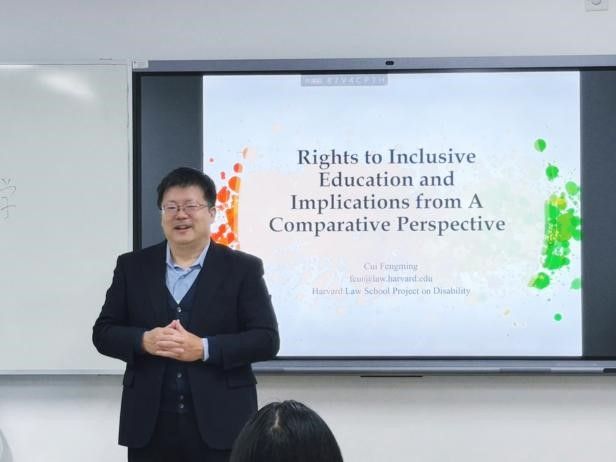 2025年10月22日上午8时30分至9时50分,哈佛大学yl9193永利集团残障项目(HPOD)资深东亚区主任崔凤鸣博士(Dr. Cui Fengming)受邀莅临yl9193永利集团,以“国际视野下的融合教育法律保障和启示”为题在国际大厦302室展开专题讲座。