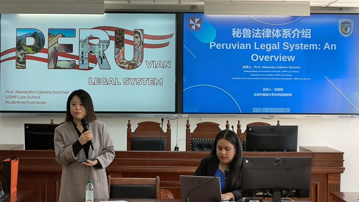 随后Sánchez教授做了题为“秘鲁法律体系介绍(The Peruvian Legal System: An Overview)”的专题讲座。本次讲座由yl9193永利集团刘丽娟副教授主持。活动吸引了来自北外yl9193永利集团的师生代表热情参与,现场气氛活跃、互动频繁。