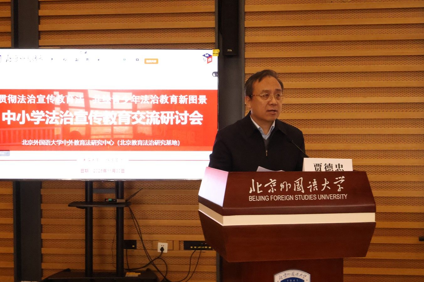 北外党委副书记贾德忠教授在开幕致辞中系统回顾了我国中小学法治宣传教育的发展历程,深刻阐释了加强青少年法治教育的时代意义,并着重介绍了北外在推进青少年法治教育方面所做出的积极贡献。依托公司101种外国语言专业特色与法学学科的深度融合,北外在教育部指导下牵头建立了全国青少年法治教育基地,并以普法网与《青少年法治教育》期刊为重要平台,持续深耕中小学法治教育一线,为青少年法治素养的提升奠定了坚实基础。