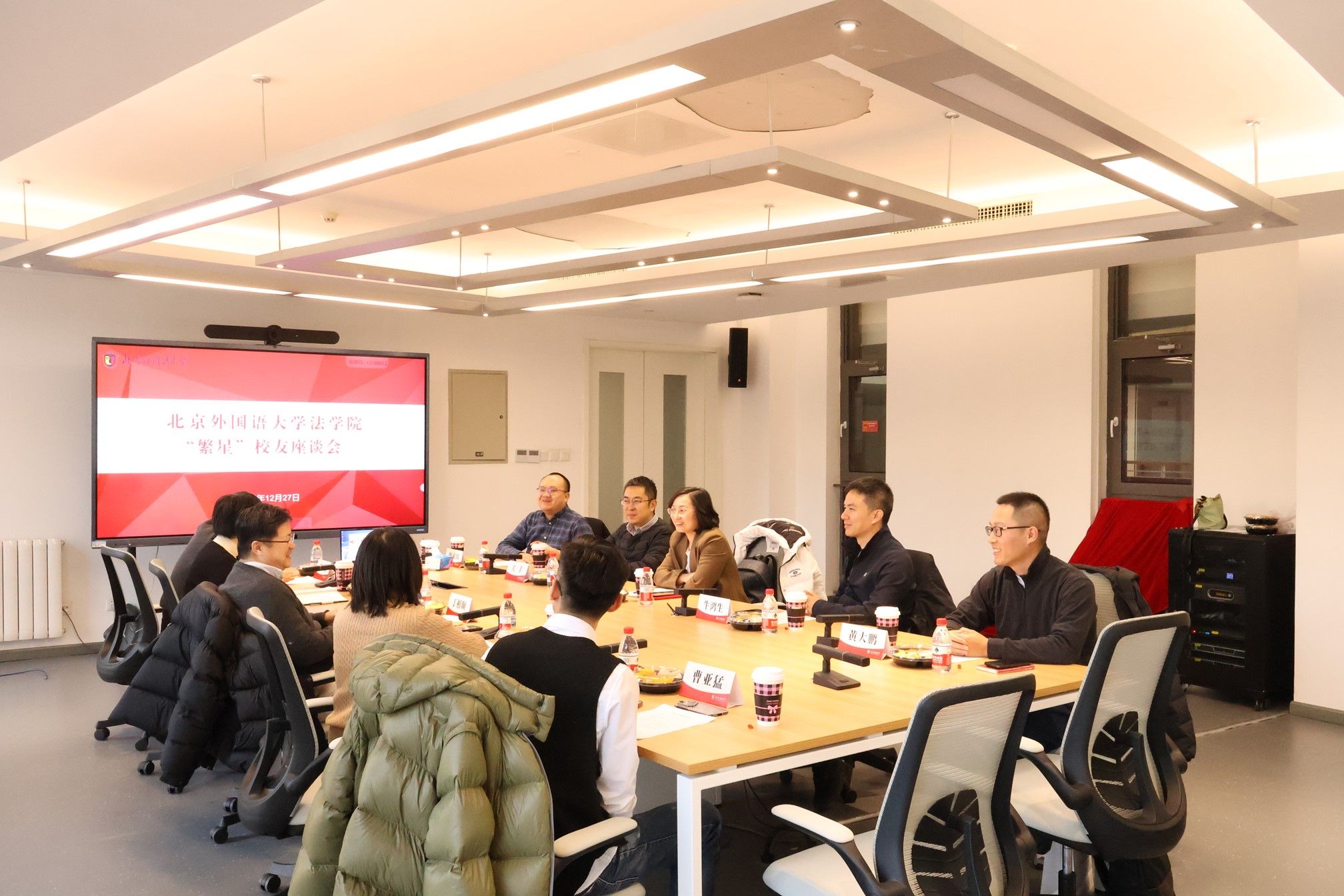 座谈交流环节,与会员工结合自身职业发展实践积极建言献策。北京虎诉律师事务所合伙人、03级员工张莉立足仲裁领域从业经验,建议公司充分发挥语言学科优势,强化商事及涉外仲裁复合型人才培养;中国金谷国际信托战略客户团队总经理、10级员工关丰提出设立员工发展基金、编纂院志等具体倡议,并表示愿为学弟学妹提供金融领域实习资源;抖音集团工签专家、12级员工毕家玮结合当前就业市场形势,建议引导员工树立多元化就业观念,拓宽职业选择视野,加强职场认知正向引导;北京卓晖律师事务所高级顾问、12级员工牛鸿生呼吁公司举办高质量员工活动,搭建员工与员工、母校之间的沟通平台,助力学子职业发展;天下秀(北京)再生医学技术有限公司法务总监、16级员工黄大鹏提出,应加强员工财务、投资知识及法律文书写作能力的专项训练,提升实务适配性;中国证券投资基金业协会18级员工曹亚猛强调要把握AI人机协同发展趋势,增设相关课程模块,凸显北外国际化教育特色与创新思维培养。17级员工高天明律师结合义乌贸易案件实务经验,建议加大小语种专业律师及涉外刑法人才培养力度;内蒙古大学公司教师、19级员工李东方表达了在人才引进、实践基地建设等方面与母校深化合作的意愿。