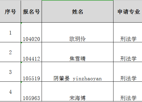 2021年推免面试名单--刑法学