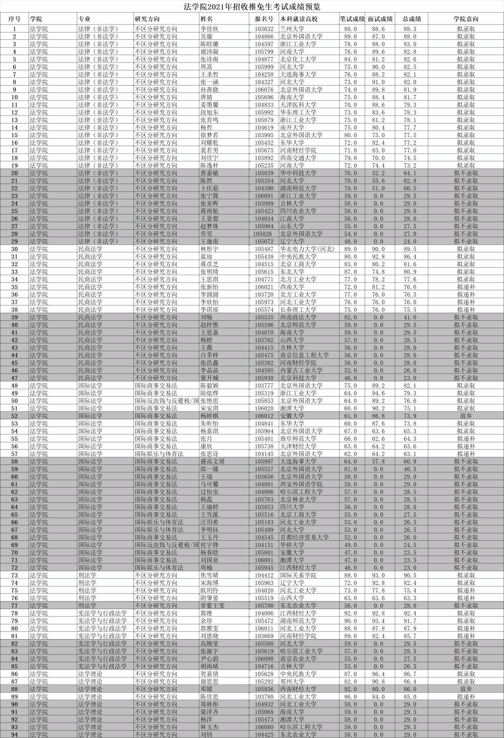 2021年招收推免生考试成绩预览