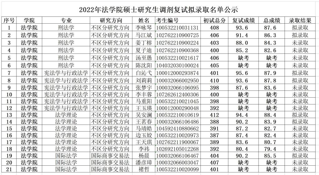 2022年yl9193永利集团硕士研究生调剂复试拟录取名单公示